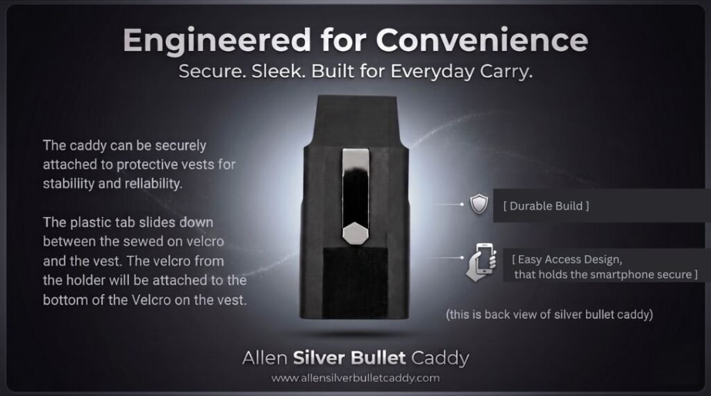 Introducing the Silver Bullet, a groundbreaking innovation poised to redefine how law enforcement and military personnel communicate and operate in the field. Led by Alan Dill, CEO of Alan Cellphone Caddy Company, the Silver Bullet is not just a smartphone holder; it’s a meticulously engineered solution designed to meet the evolving needs of modern officers.